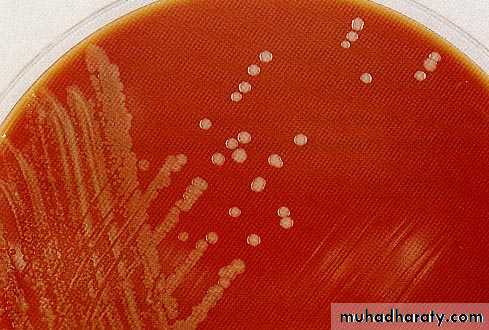 Non-motile, Gram-negative, non-capsulate diplococci.Culture and identifcationSpecimens are usually inoculated onto an enriched medium(lysed blood or chocolate agar normally) and incubatedunder 5–10% carbon dioxide (as the species is capnophilic).Small, grey, oxidase-positive colonies initially become largeand opaque on prolonged incubation.