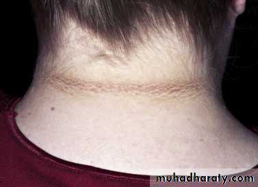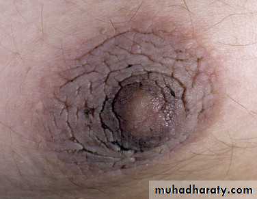 The most common site of involvement is the axilla, but also flexural areas of the posterior neck, groin, belt line, dorsal surfaces of the fingers, mouth, and around the areolae of the breasts and umbilicus.