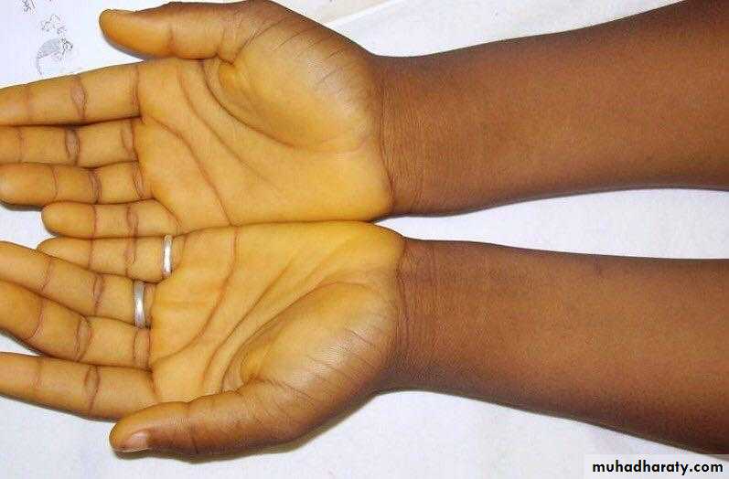 Carotenemia is a clinical condition characterized by yellow pigmentation of the skin (xanthoderma) and increased beta-carotene levels in the blood. In most cases, the condition follows prolonged and excessive consumption of carotene-rich foods, such as carrots and sweet potatoes.. The condition of carotenemia is harmless, but it can lead to a mistaken diagnosis of jaundice.