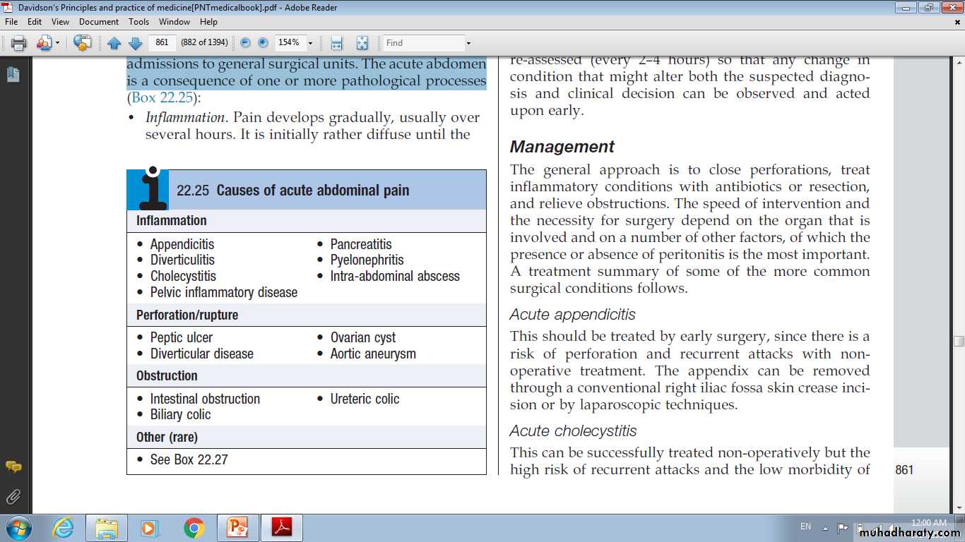 The acute abdomen:Management