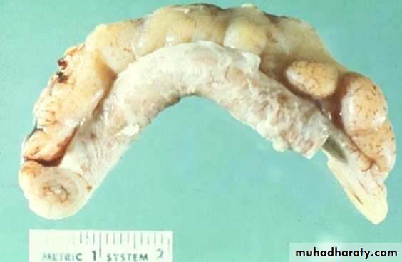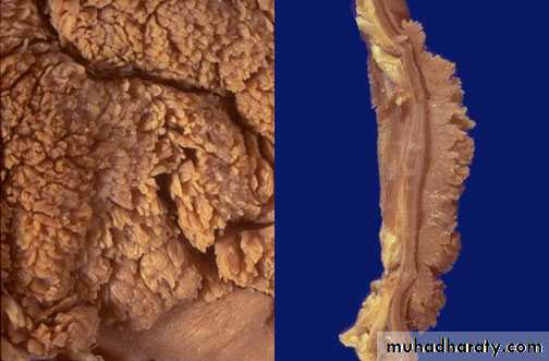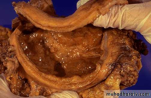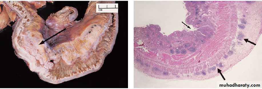 Infitrative to gastric wall , malignant cells had intracellular mucin push the nucleus to the periphery (Linitis Plastica)SMALL INTESTINE AND COLON