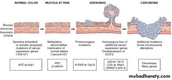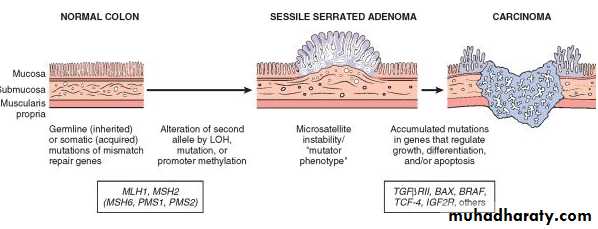 the APC/β-catenin pathway adenoma-carcinoma sequencemicrosatellite instability pathway, which is associated with defects in DNA mismatch repair