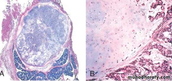 60% of tumors in the parotid, are less common in the submandibular glands, and rarely in minorbenign tumors that consist of a mixture of ductal (epithelial) and myoepithelial cells, and therefore they show both epithelial and mesenchymal differentiation.