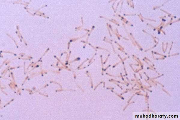 the bacilli lie at various angles to each other, resembling the letters, V or L;