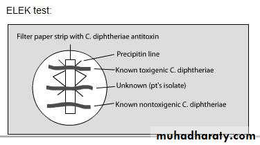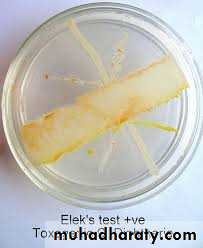 In vitro test;A rectangular strip of filter paper is saturated with the diphtheria antitoxin(1000 units/ml);