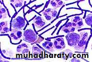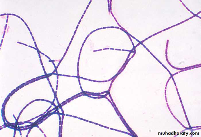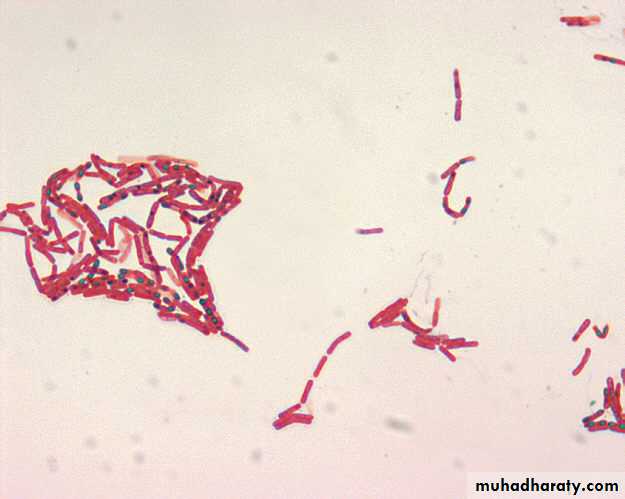 Gram stain of Bacillus anthracis showing Gram-positive rods forming long filaments. “Bamboo –like appearance”