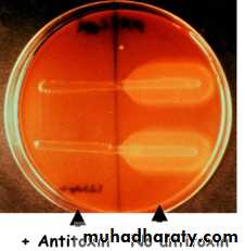 -Characteristics opalescence is produced around colonies in +ve test due to breakdown of lipoprotein complex in the medium