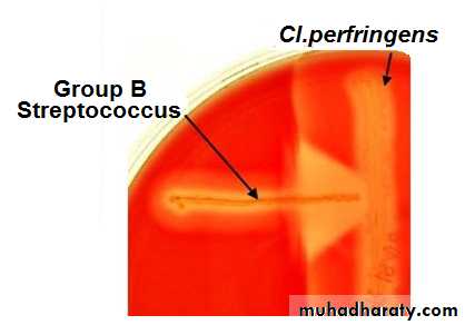 -Used for differentiation of Cl.perfringens from other clostridium species.-CAMP +ve Group B Streptococcus is streaked in SBA & Cl.perfringens is streaked perpendicular to it “arrowhead”(enhanced) hemolysis is seen between growth of Cl.perfringens & Group B streptococcus
