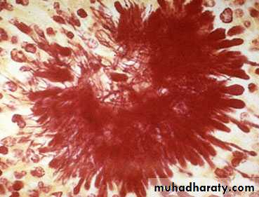 21Examination of drained fluid under a microscope shows "sulphur granules" in the fluid. They are yellowish granules made of clumped organisms