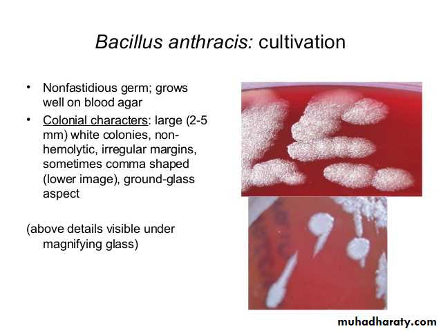 Cultural Characteristics:= Blood Agar and Nutrient Agar are commonly used to cultivate the bacilli.