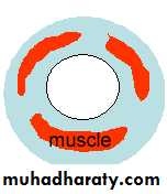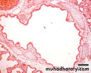 (Fig -6 a&b): (a). A CS of a bronchiole where there is neither cartilage nor glands. Can you identify the ring of smooth muscle, which is arranged in discrete bundles with a variety of organizations.