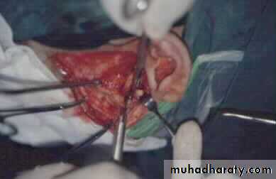 2- Surgical treatment or open reduction: the joint space is surgically exposed and the condyle fixed in its original position by wire or plate.