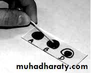 Put on the slide one drop of anti A, anti B , anti D ( keep a good space between each other )