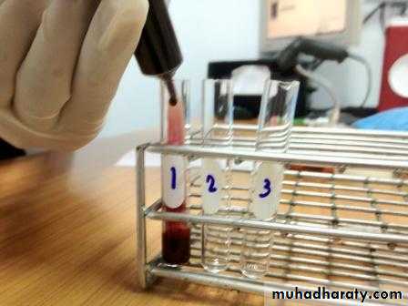 1-lable three glass test tubes with patient name and no. them 1,2,3.