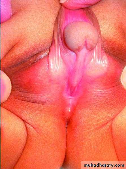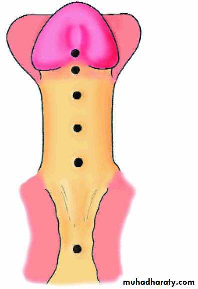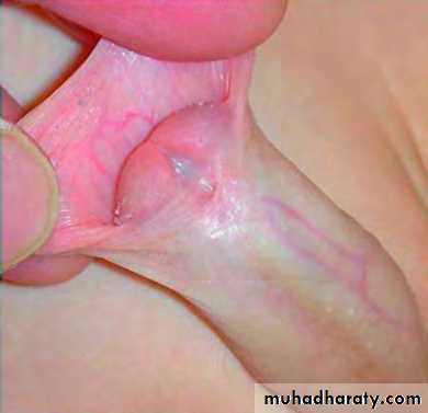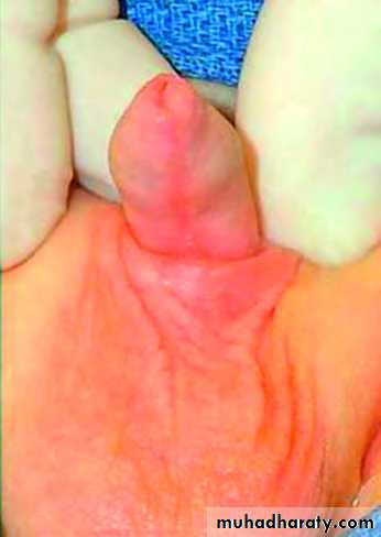 • • the prepuce is poorly developed ‘hooded prepuce”