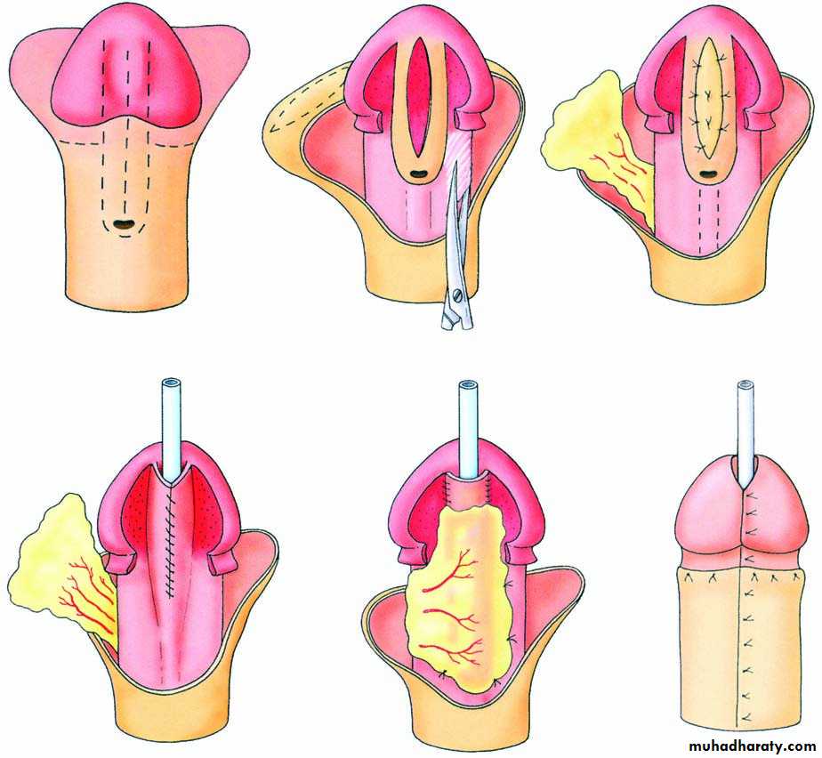 A variety of plastic surgical procedures is described to correct the chordee and to re-site the urethral opening.