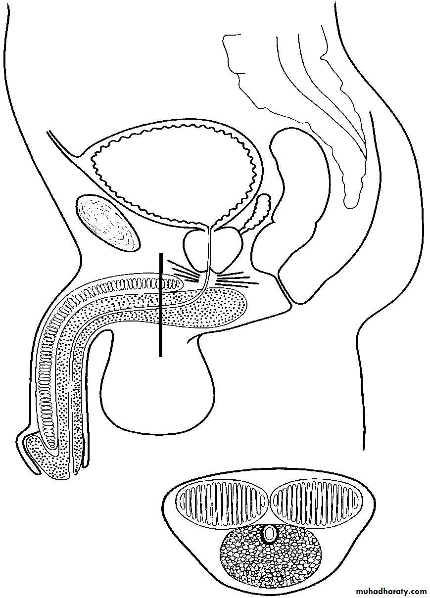 the bulbous urethra 3–4 cm (the widest part)