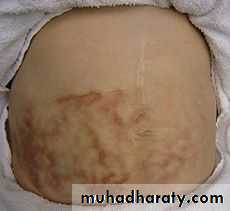 Malnourished patient, skin pigmentation over the abdomen and back is common and results from chronic use of a hot water bottle (erythema ab igne).