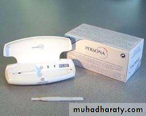 4. LH detection kits:serial measurement of urinary luteinizing hormone using home prediction kit. A system of hormone monitoring designed to better define the fertile period involves placement of disposable test sticks in a small battery powered device to detect urinary estrone-3 glucuronide and LH. This device (Persona) can serves as both an aid to fertility and a form of contraception