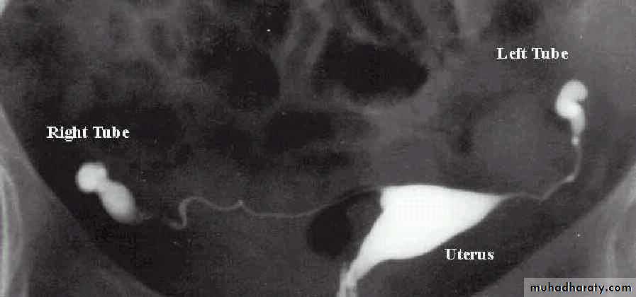 Once preliminary investigations suggest that a woman is ovulating and semen parameters are satisfactory, the next step should be assessment of tubal status. It can be assessed by three different methods:a. Hystrosalpingography