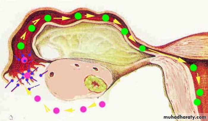 the subsequent transport of the cleaving embryo up to the endometrial cavity for its normal implantation and further development (endometrial preparation). Receptive endometrium to allow the resulting embryo to implant which is limited to days 16-19 (of a 28-day cycle) and it is important that the hatched blastocyst adheres to the endometrium during this time if pregnancy is to occur.Requirements for normal fertility: