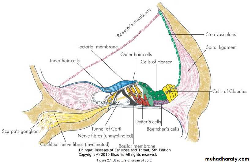 which is formed by the inner and outer rods.Figure 2.1 Structure of organ of corti.