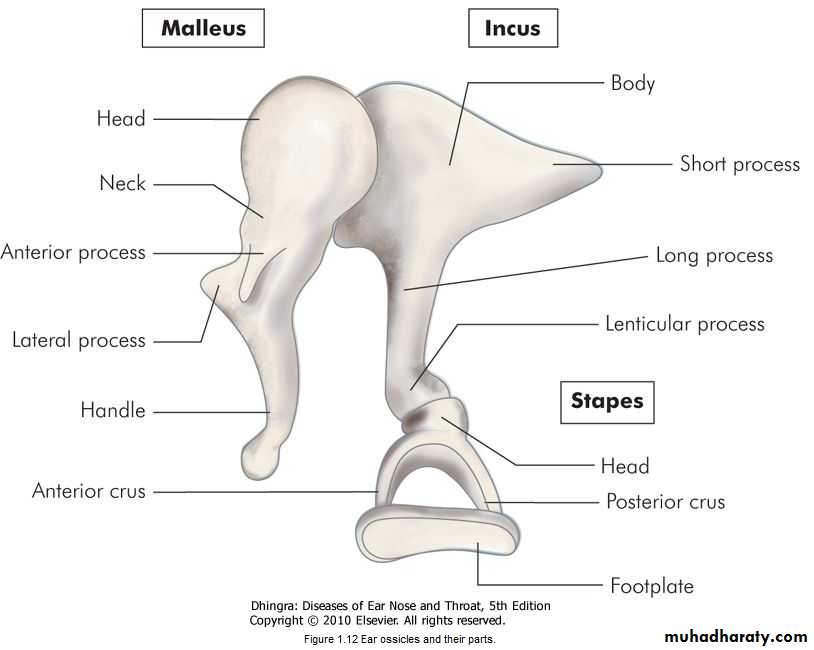 There are three ossicles in the middle ear-the malleus, incus and stapes.Intratympanic Muscles