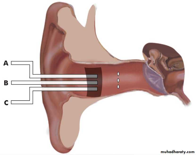 External earAny obstruction in the ear canal, e.g. wax, foreign body, furuncle, acute inflammatory swelling, benign or malignant tumour or atresia of canal.