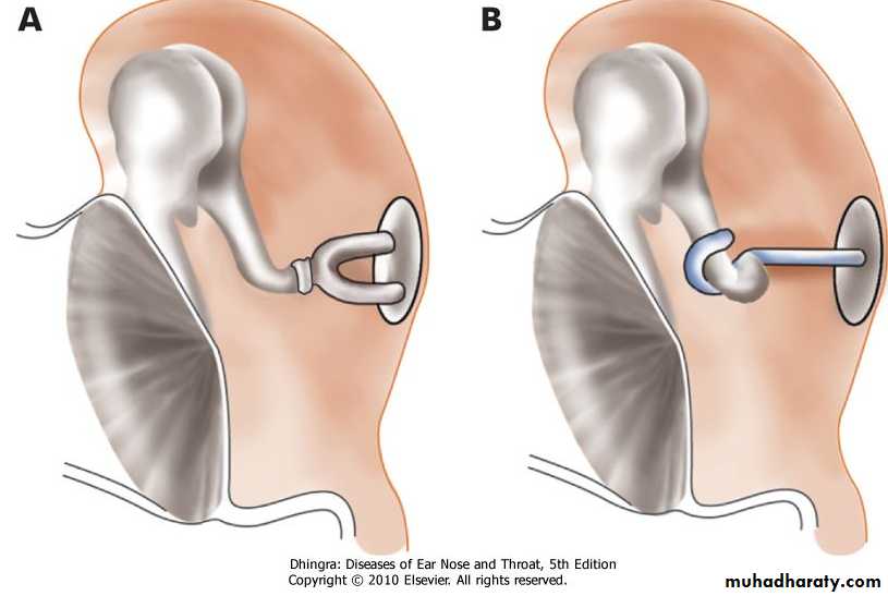 Patients who refuse surgery or are unfit for surgery can use hearing aid. It is an effective alternativeFigure 13.3 (A) Before removal of stapes. (B) Stapes removed and replaced by a teflon piston.