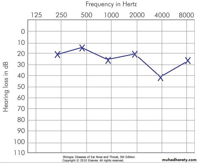 whether loss is high frequency, low frequency, mid-frequency or flat type.4. Site of lesion