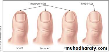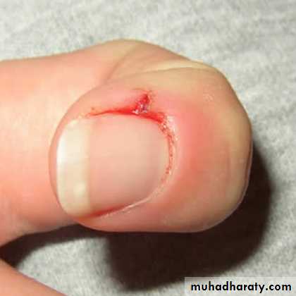Ingrown fingernails and toenails are common.The large toe is the most frequently affected.