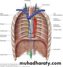 Medially :Related to the vertebral artery and vein and the sympathetic trunk. On the left side, the medial border is related to the thoracic duct.