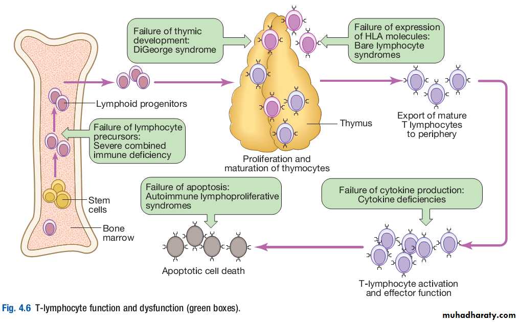 Failure of thymic development is associated with profound Tcell immune deficiency , but surgical removal of the thymus in childhood (usually in the context of major cardiac surgery) is not associated with significant immune dysfunction.