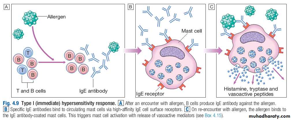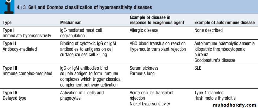 • Type I hypersensitivityis relevant in allergy but is not associated with autoimmune disease.