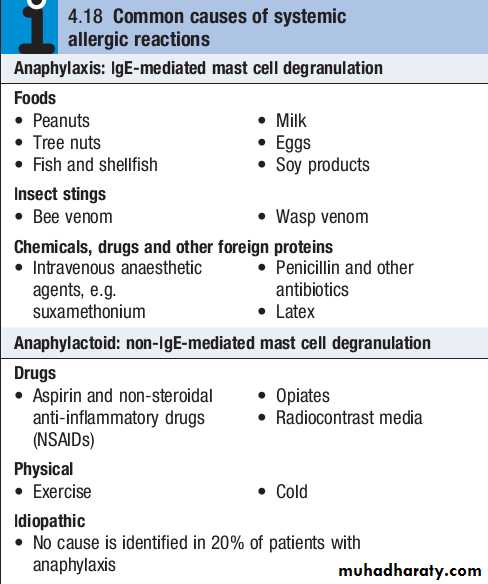 Anaphylaxis is a potentially lifethreatening, systemic allergic reaction caused by the release of histamine and other vasoactive mediators from mast cells.The risk of death is increased in patients with preexisting asthma, particularly if this is poorly controlled, and when treatment with adrenaline (epinephrine) is delayed.