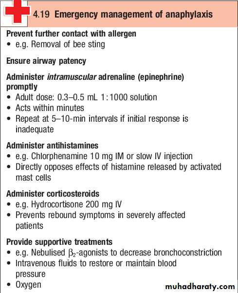 The severity of a reaction should be assessed; the time between allergen exposure and onset of symptoms provides a guide.