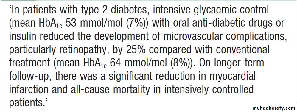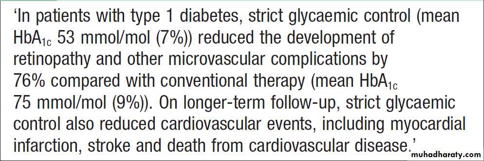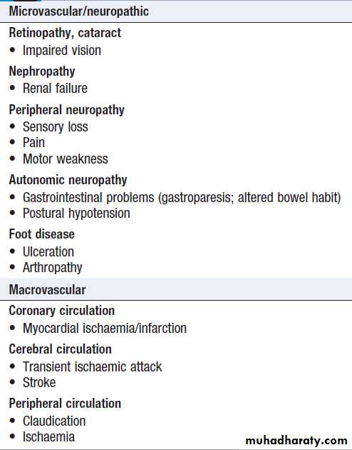 Chronic hyperglycaemia is responsible for diabetes-specific ‘microvascular’ complications affecting the eyes (retinopathy), kidneys (nephropathy) and feet (neuropathy).