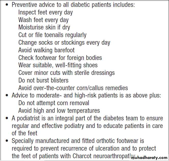 be educated in preventive measures . The feet of patients with diabetes should be screened annually. Two simple tests
