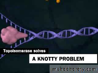 To solve this problem, there is a groupof enzymes called DNA topoisomerases, which are responsiblefor removing supercoils in the helix