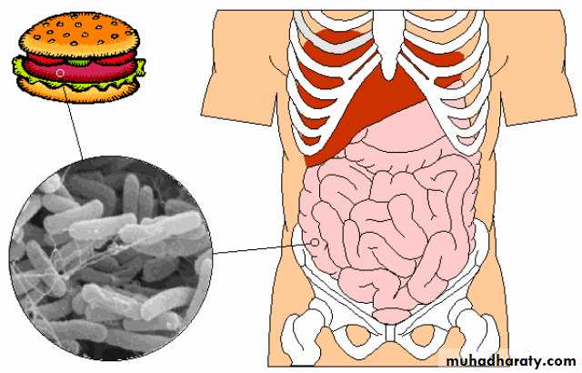 Infection is by ingestion of contaminated food, or person-to-person via the fecal–oral route.The carrier state, which develops in some after infection, is an important source of organisms