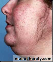 Excess adrenal androgen secretion results in acne, hirsutism, and virilization