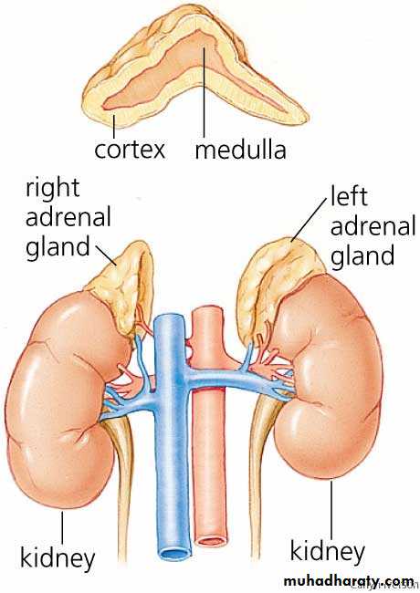 Functional anatomy and physiologyThe adrenal glands lie at the superior pole of each kidney. Each adrenal gland weighs approximately of 4-5 g.