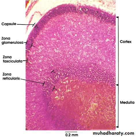 adrenal cortex: represents 90% of adrenal gland, consists of three anatomic zones;