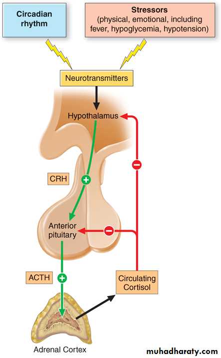 • Hypothalamic-pituitary-adrenal (HPA) axis; regulate cortisol and androgen production.
