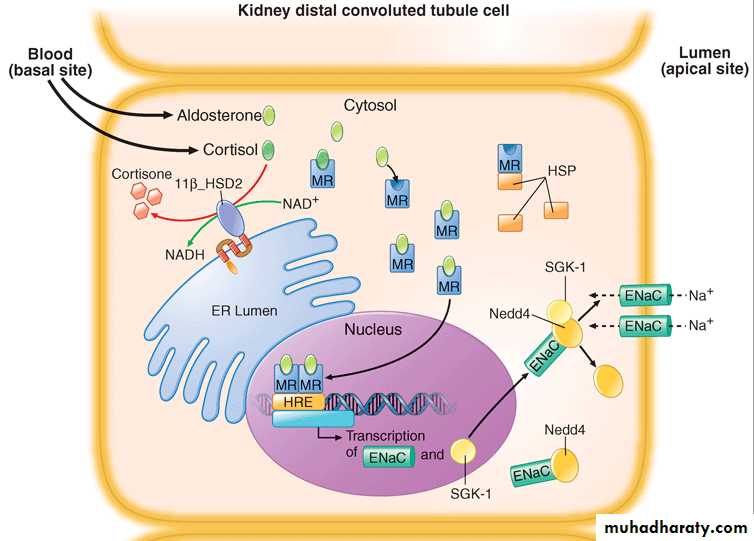 Prereceptor inactivation of cortisol and mineralocorticoid receptor action.