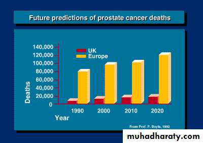Is the second most common cause of cancer related death in men older than 50 years of age after carcinoma of the lung with peak incidence between the ages of 65-75 years.Autopsy studies show that 30% to 40% of men over 50, who had no symptoms of prostate cancer whilst alive, have histological evidence of prostate cancer at the time of death. This percentage rises to 60% to 70% in men over 80 years of age.