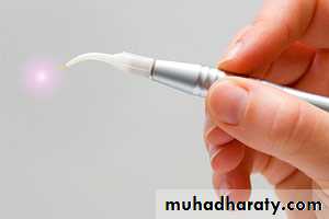 Argon lasers having a wavelength of 488nm & are used for tooth whitening , curing of composites , curettage etc Color-Blue