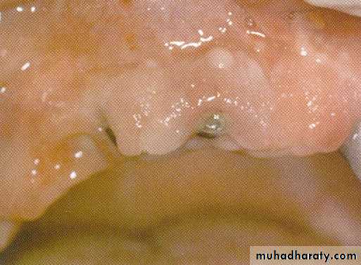 They may also interfere with lingual bars or flanges of mandibular prostheses.