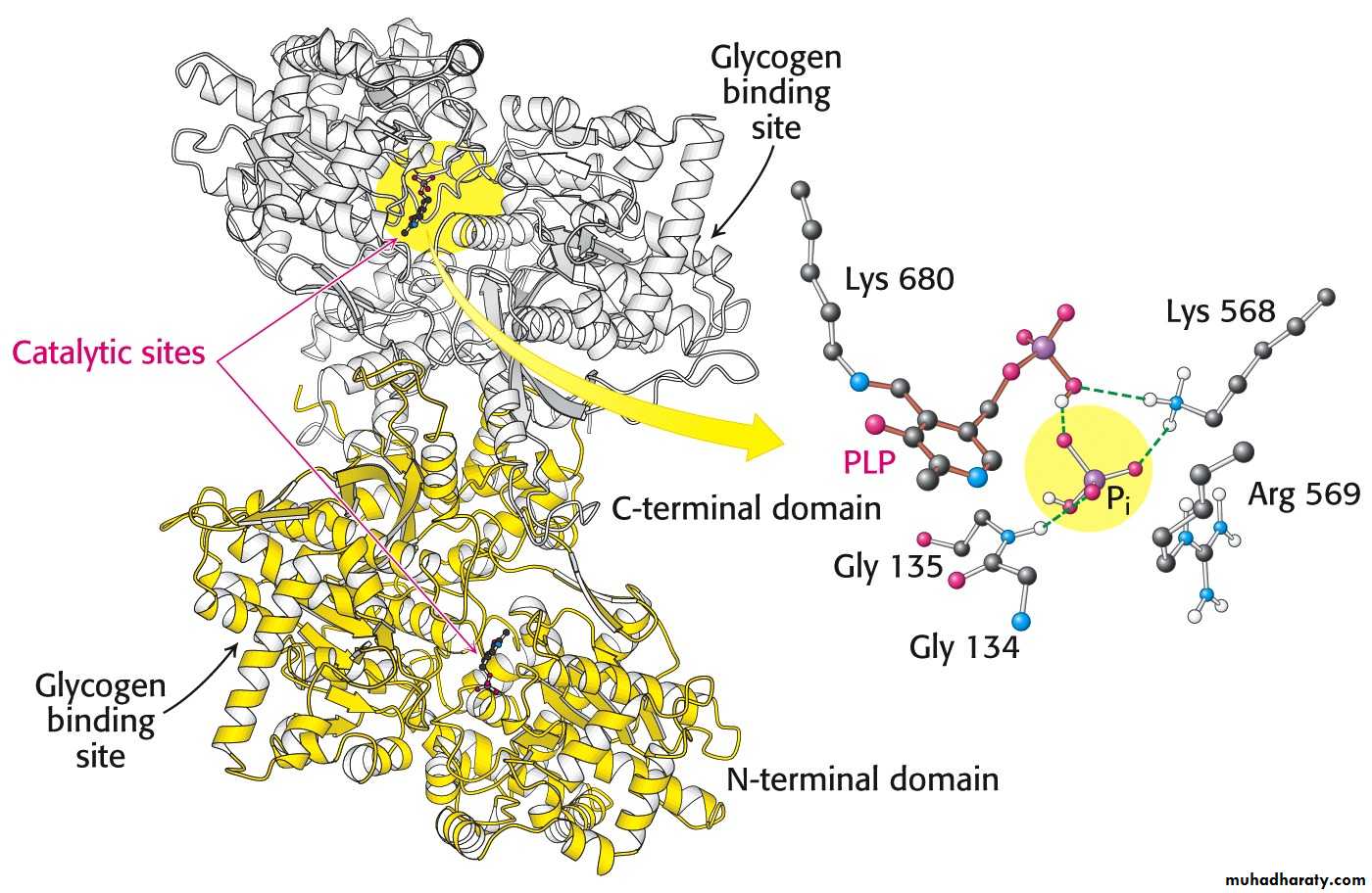 Glycogen phosphorylase uses pyridoxal phosphate (PLP) a derivative of pyridixine (vitamine B6) as a coenzyme.