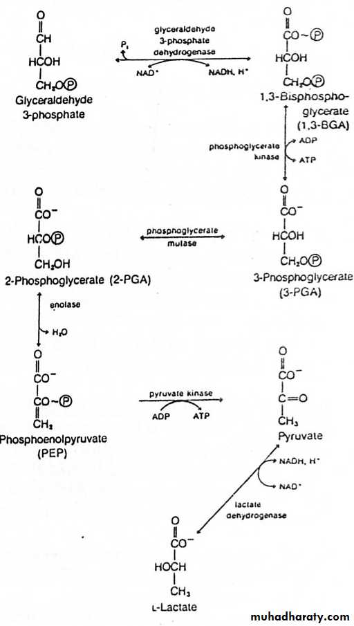 1. In absence of oxygen, lactate is the end product of glycolysis: